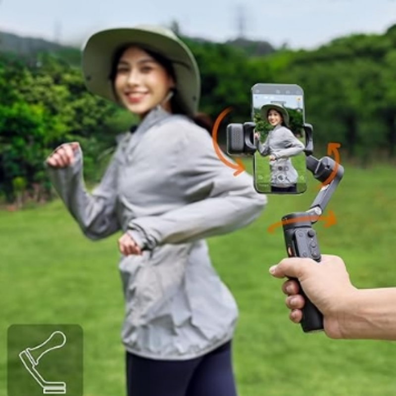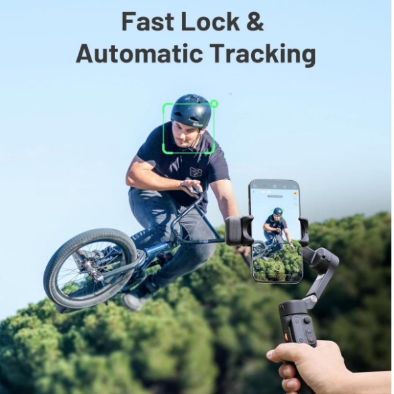 FAST TRACK: Use simple gestures to control the tracking and shutter with phone gimbal; Freely select the tracking target to achieve smooth face and object tracking, whether in a fixed position or surround movement; No more need for a photographer, making your shooting smoother and easier.