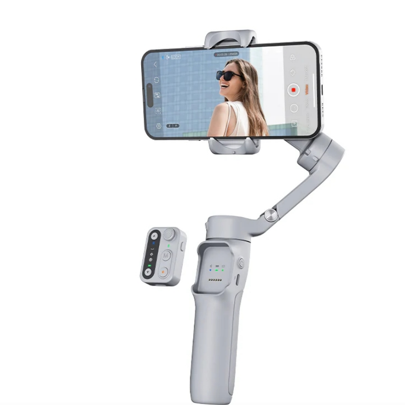 INNOVATIVE REMOTE CONTROL:Hand-held or remote-controlled as you wish; A detachable remote control with a 10m working distance extends your creativity, you can effortlessly control your shooting, switch between landscape and portrait and easily take selfies or group photos without help; Automatically charged when attached to the gimbal.