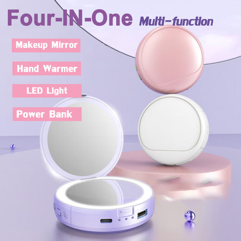 4-in-1 LED Lighted Mirror with Power Bank & Hand Warmer