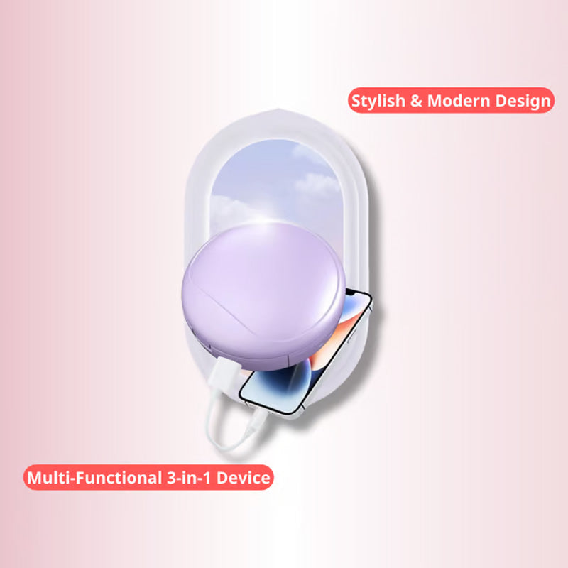 POWER UP ANYWHERE, ANYTIME - Never let your devices run out of battery again! This mirror doubles as a portable power bank, keeping your phone charged during busy days. Compact and stylish, it's the ultimate multitasker you'll always want by your side.
