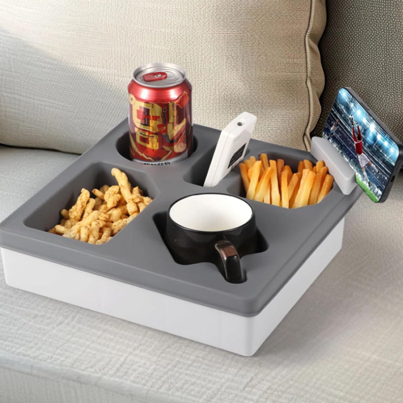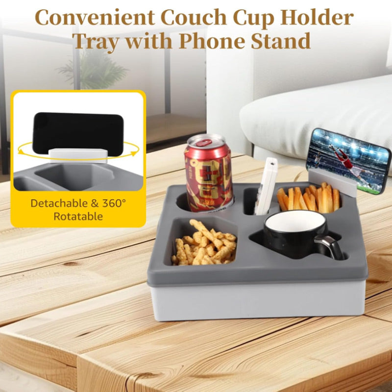Couch Cup Holder Tray with Phone Stand