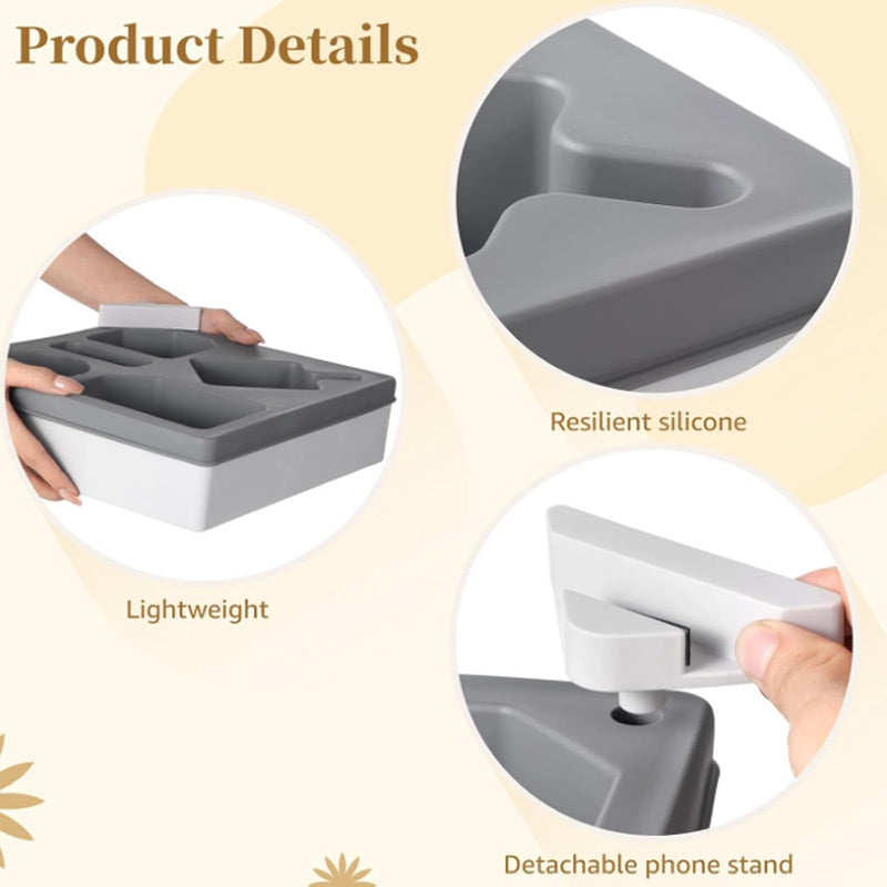 VERSATILE USE: This silicone storage tray is suitable for various environments, including sofas, beds, and car seats, keeping your essentials organized while enjoying easy accessibility.