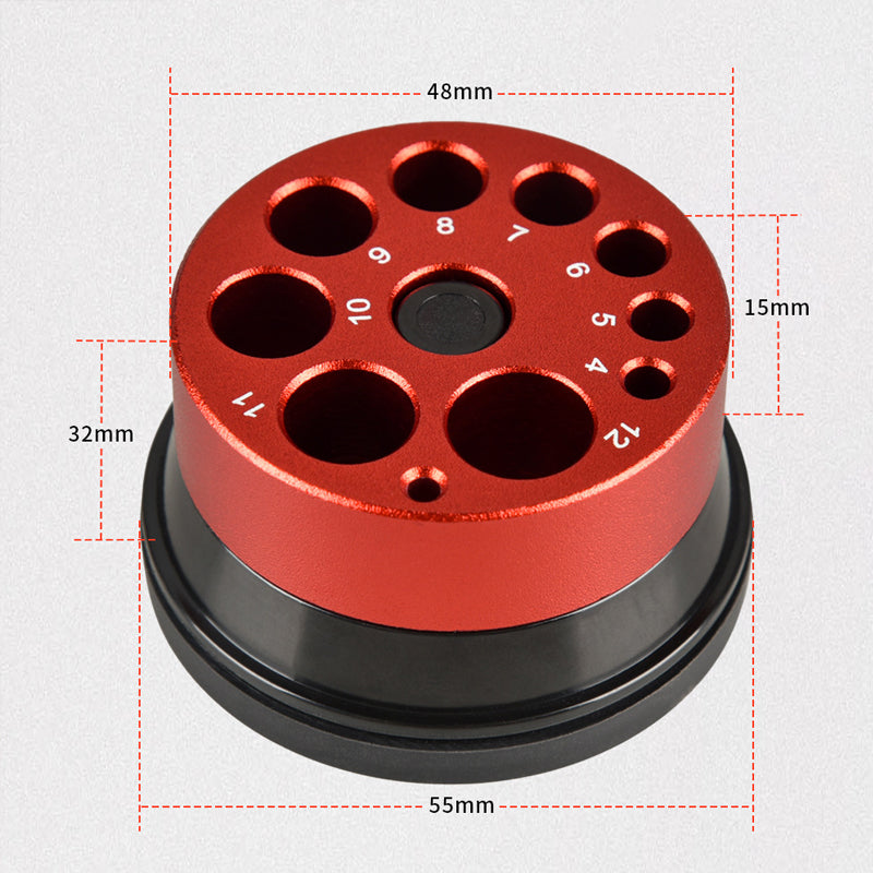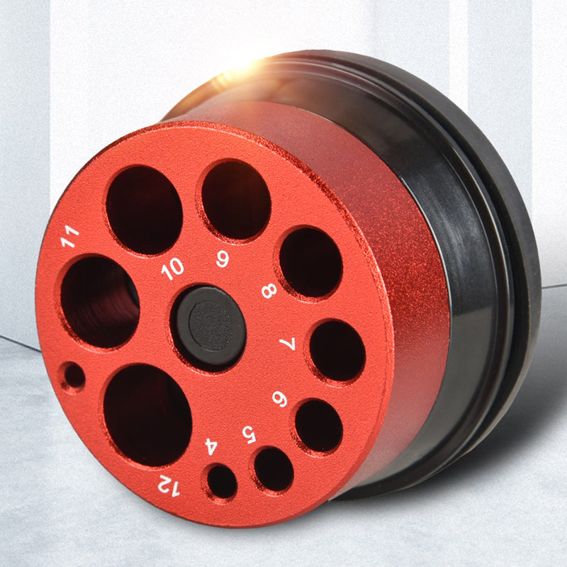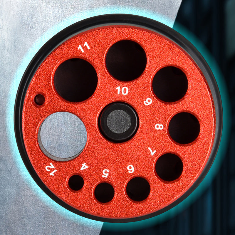 Weighing 65g, it fits easily into your toolkit. 9 hole diameters support different drills, so you can match the hole to the size of your drill. Once selected, the holes can be precisely fixed by turning the dial.
