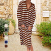 Package Included:1*Elegant V-Neck Striped Split Hem Dress