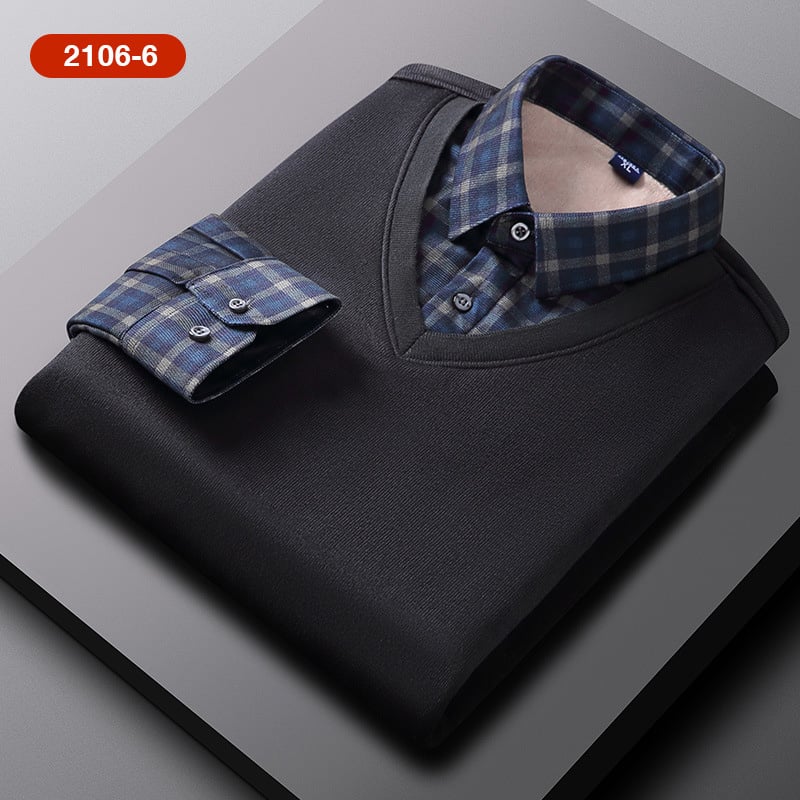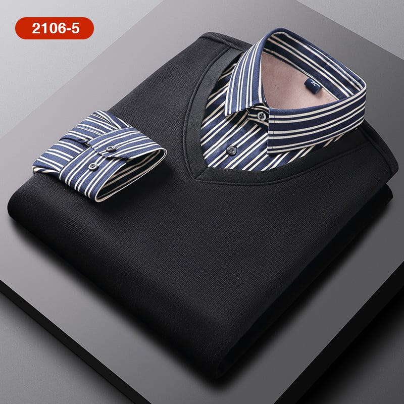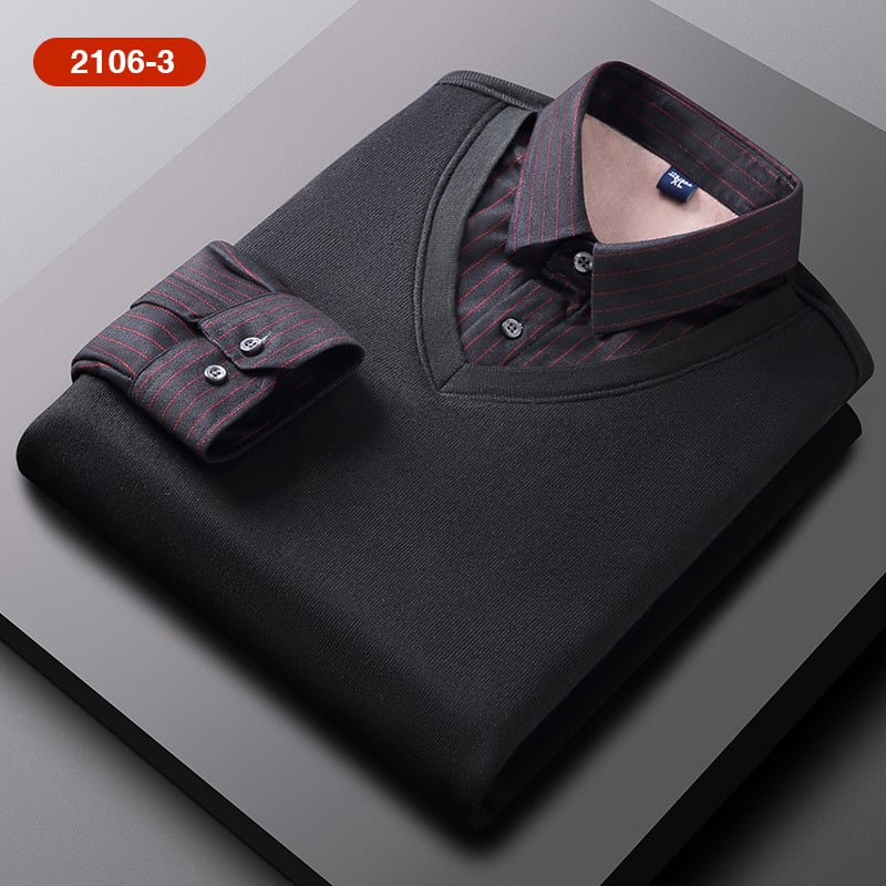- EASY MATCHING - Fake Two Knitted Sweater is easy to match.Wearing classic fitted sweater alone in cool fall or having it on as a layer under a blazer in cold winter will keep you warm. You can also pair with a dress shirt and Button-ups, Jeans or Dress Pants to make look your gentlemen.
