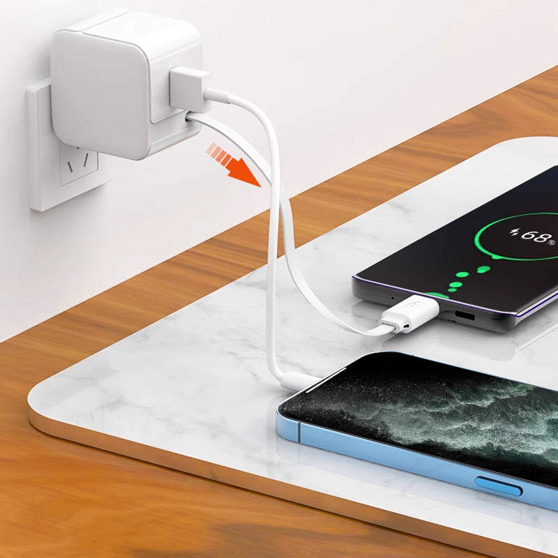 DUAL-PORT CHARGING: Supports fast charging through two ports simultaneously.Intelligent power distribution ensures optimal charging speed for both connected devices.