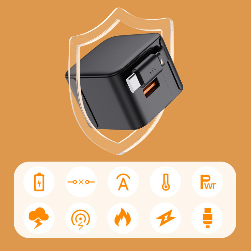 RETRACTABLE CABLE: Comes with a built-in retractable charging cable.Easily store and manage the cable, avoiding the hassle of tangled cords, especially during travel.