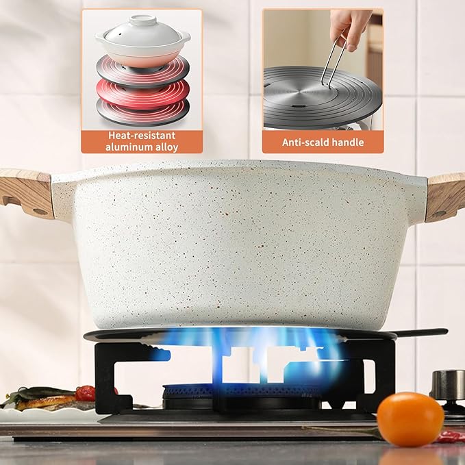 REMOVABLE HEAT DIFFUSER PLATE - the heat sink of the stove can collect heat for heat retention, turn off the fire source in advance and continue to heat through the heat of the heat conducting plate, so that the soup does not get cold in winter.