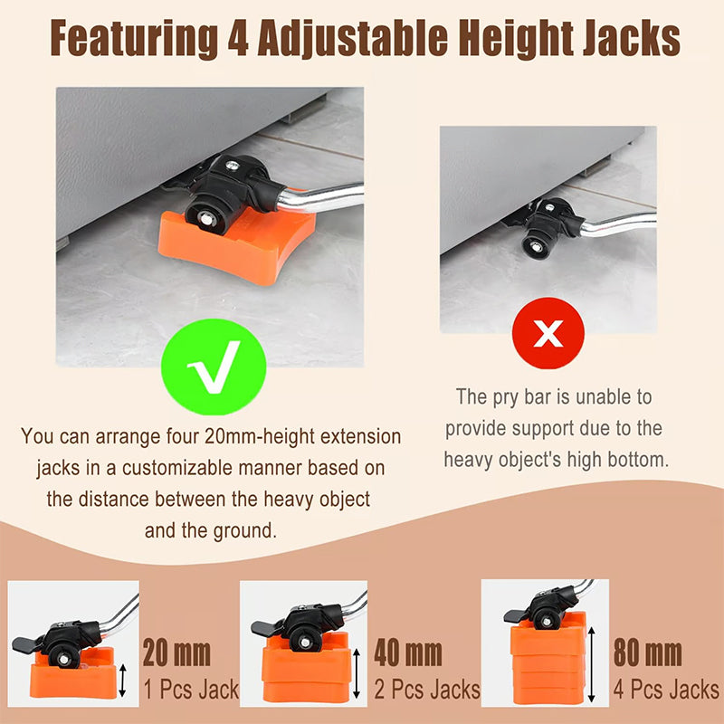 GOOD HELPER FOR MOVING FURNITURE - Our package includes 4 movers, 1 lifter, and 4 pads. This furniture mover set is designed to support and move heavy furniture, appliances, and large items with ease.