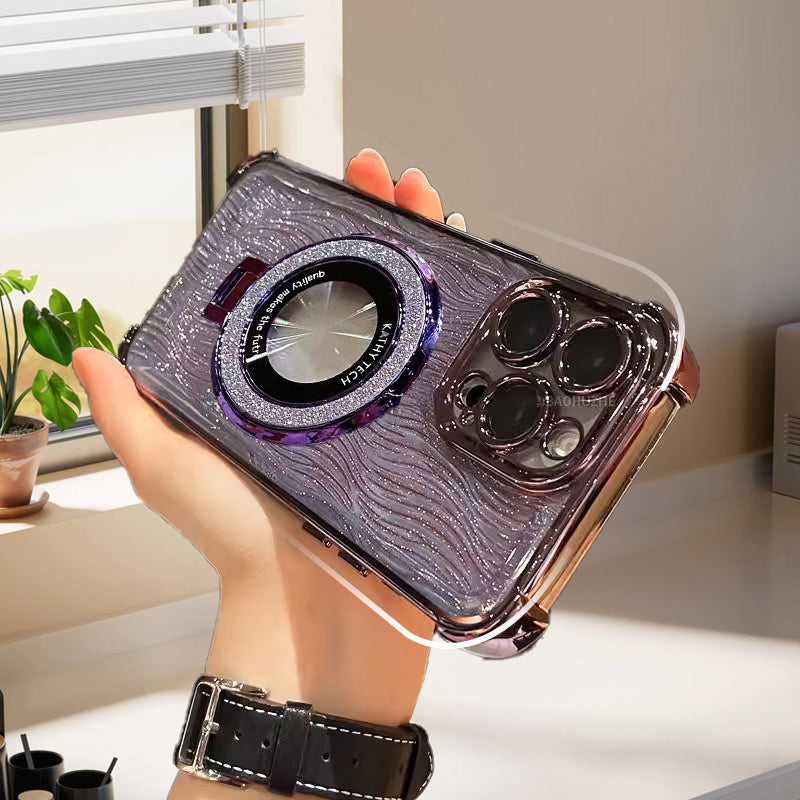 Shiny Wave Texture Case with Magnetic Ring for iPhone Series