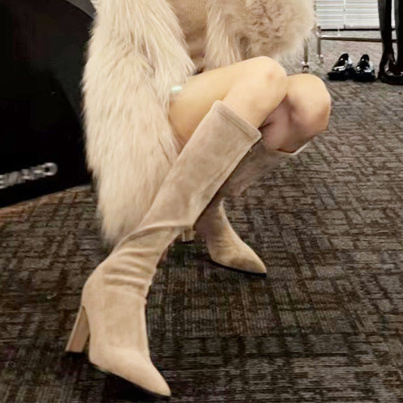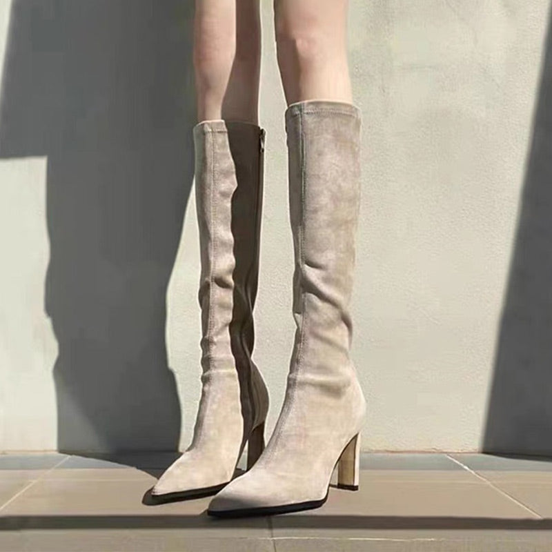 CHIC 8CM HEEL – These knee-high boots feature a 8.5cm block heel, offering a sophisticated look while providing excellent comfort for long wear.