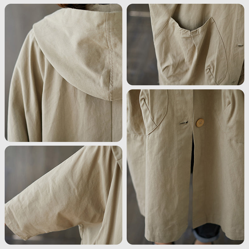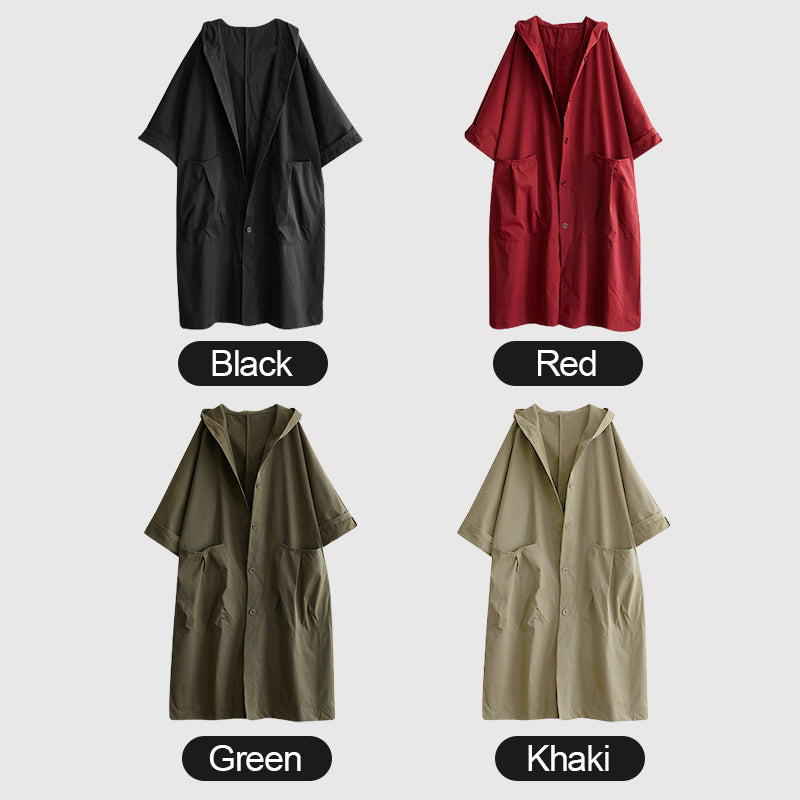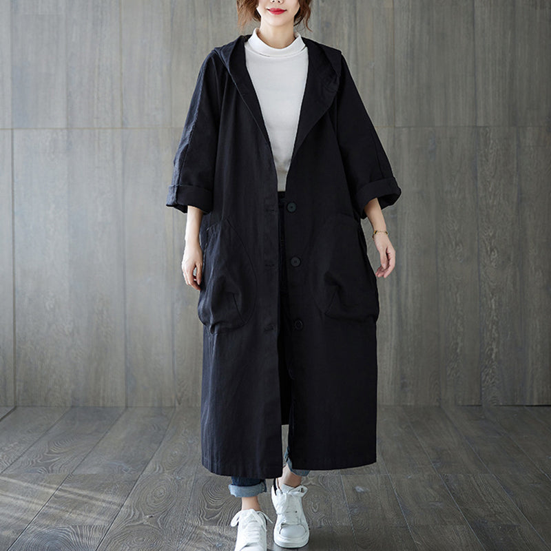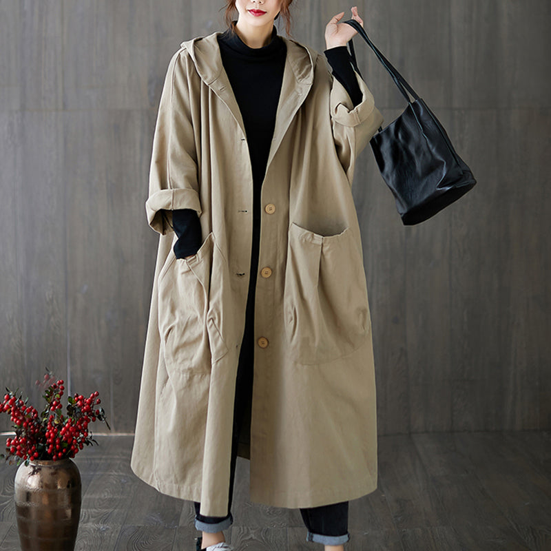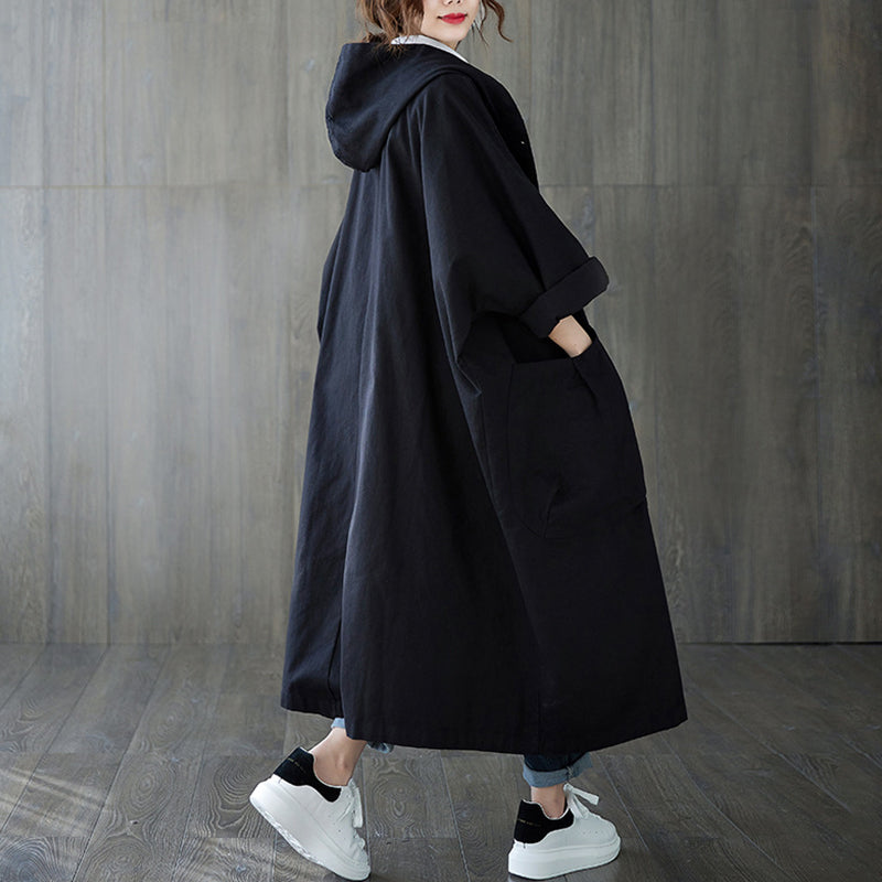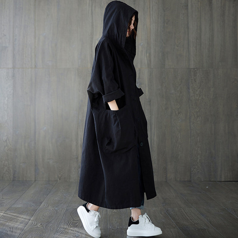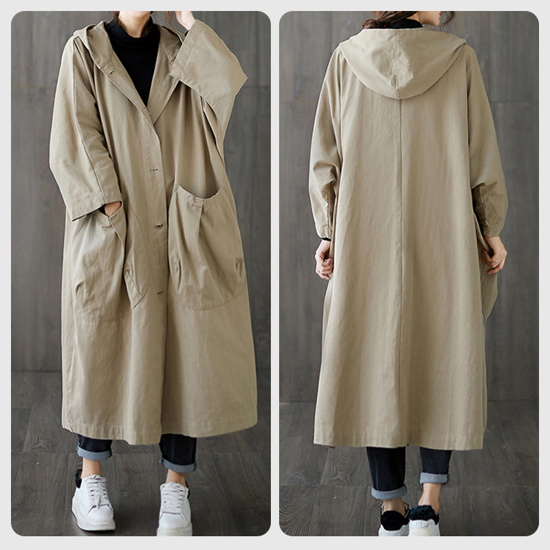 Oversized Large Pocket Hooded Long Trench Coat