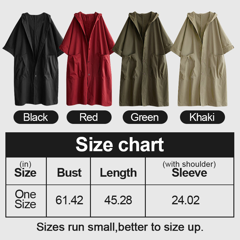 Step out in style and stay warm this season with an Oversized Large Pocket Hooded Long Trench Coat. Featuring two large and deep side pockets, a modern hooded design, wide and comfortable sleeves, and a button-down closure, this coat is perfect for any occasion. Keep your hands warm and your style on-trend with this must-have piece.