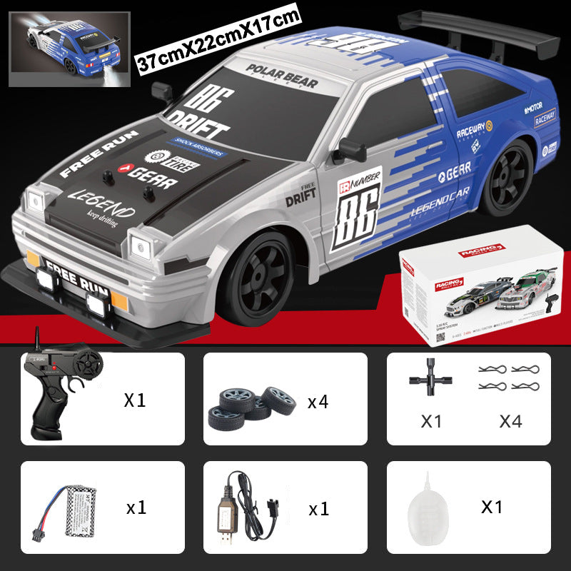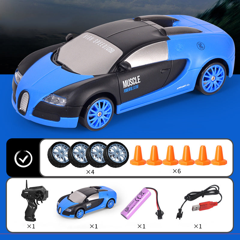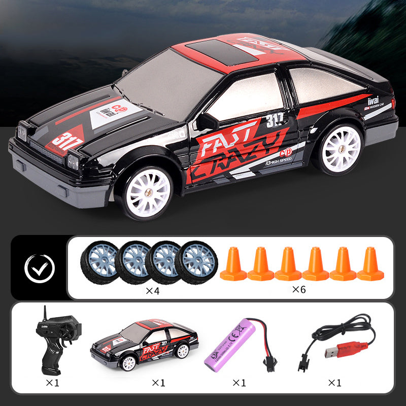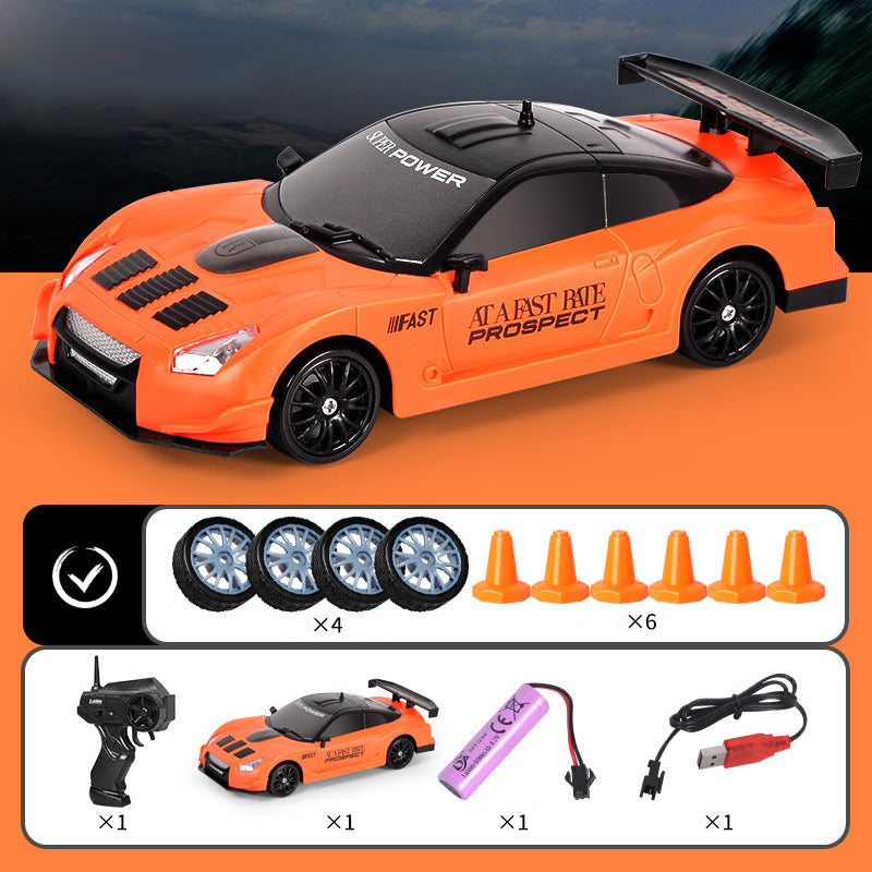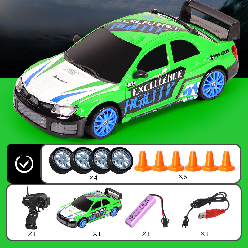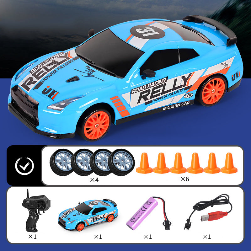 The Rechargeable RC Drift Racing Car Toys are perfect for racing fans of all ages. This RC car is designed to drift and race with ease. It has a full-function remote control and is powered by a rechargeable battery. The car features a powerful motor and a sleek body design that is sure to turn heads. The car also comes with a set of tires that are specifically designed for drifting.