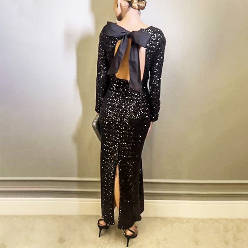 🔥🖤Black Friday Sale:50% OFF🔥Sequined Bow Maxi Dress with Backless Split