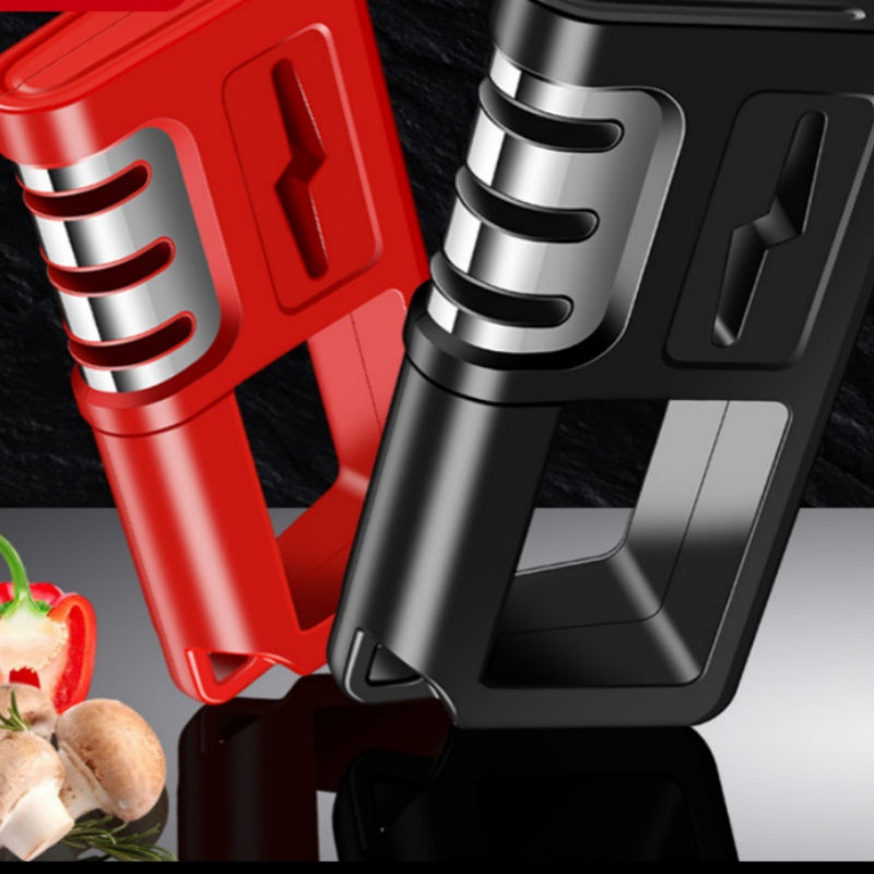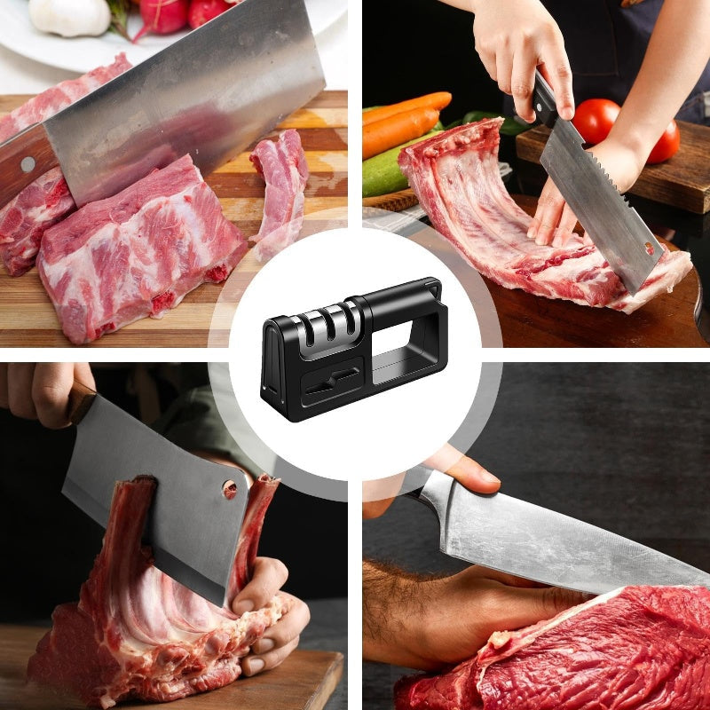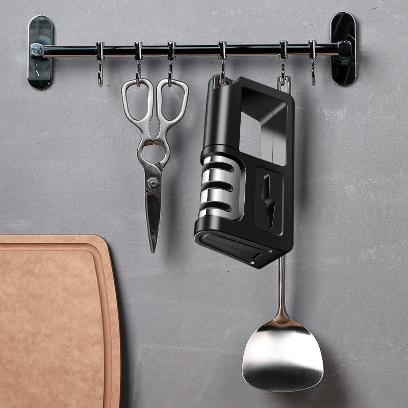 CONVENIENT HANG HOLE FOR EASY STORAGE: Equipped with a convenient hang hole, this sharpener is easy to store and access in your kitchen. Its space-saving design makes it ideal for busy kitchens, allowing for quick and hassle-free use.